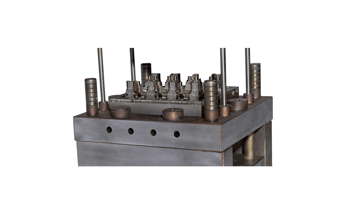 模具設計時依據產品要求分解成精密且簡單的設定結構,分別安排在不同之工站,規避模具工站結構脆弱部份而增長壽命,其壽命可達到500W沖次以上。